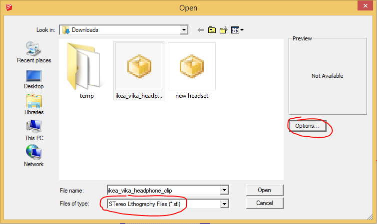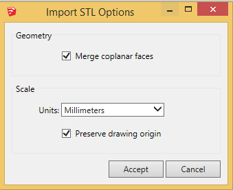 Click Options, Check both boxes and Select MillimetersSelect STL, Click Options and Open your File Check both boxes and select millimeters. - Inspect your file for any defects, and fix problems.